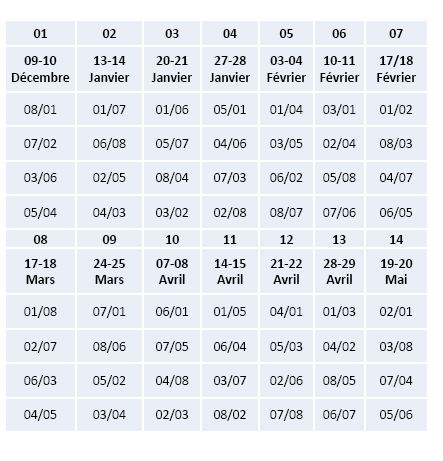 Calendrier & Résultats