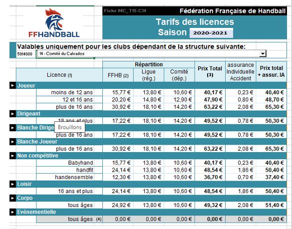 Lors du paiement de votre licence au CHBC, une part importante est reversée aux structures de la Fédération Française de Handball. Cette plaquette d’information vous informe des prix (saison 2020-2021).